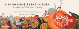 You're invited to our upcoming fall showhome event in Sora! Take life to new heights, in this beautiful SE Calgary community.Come home to colour this fall in Sora, Southeast Calgaryβs new community! Join us for a cozy afternoon of autumn fun, family memories, and showhome tours at our community Pumpkin Patch Festival, showhome event.Saturday, October 18th, 20251:00PM - 4:00 PM, at the Sora Showhome Parade.Address: 319 Sora Boulevard SE/ Calgary, AB T3S 0M6 (Homes By Avi Sora Duplex and Laned Homes)